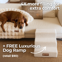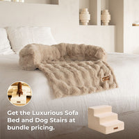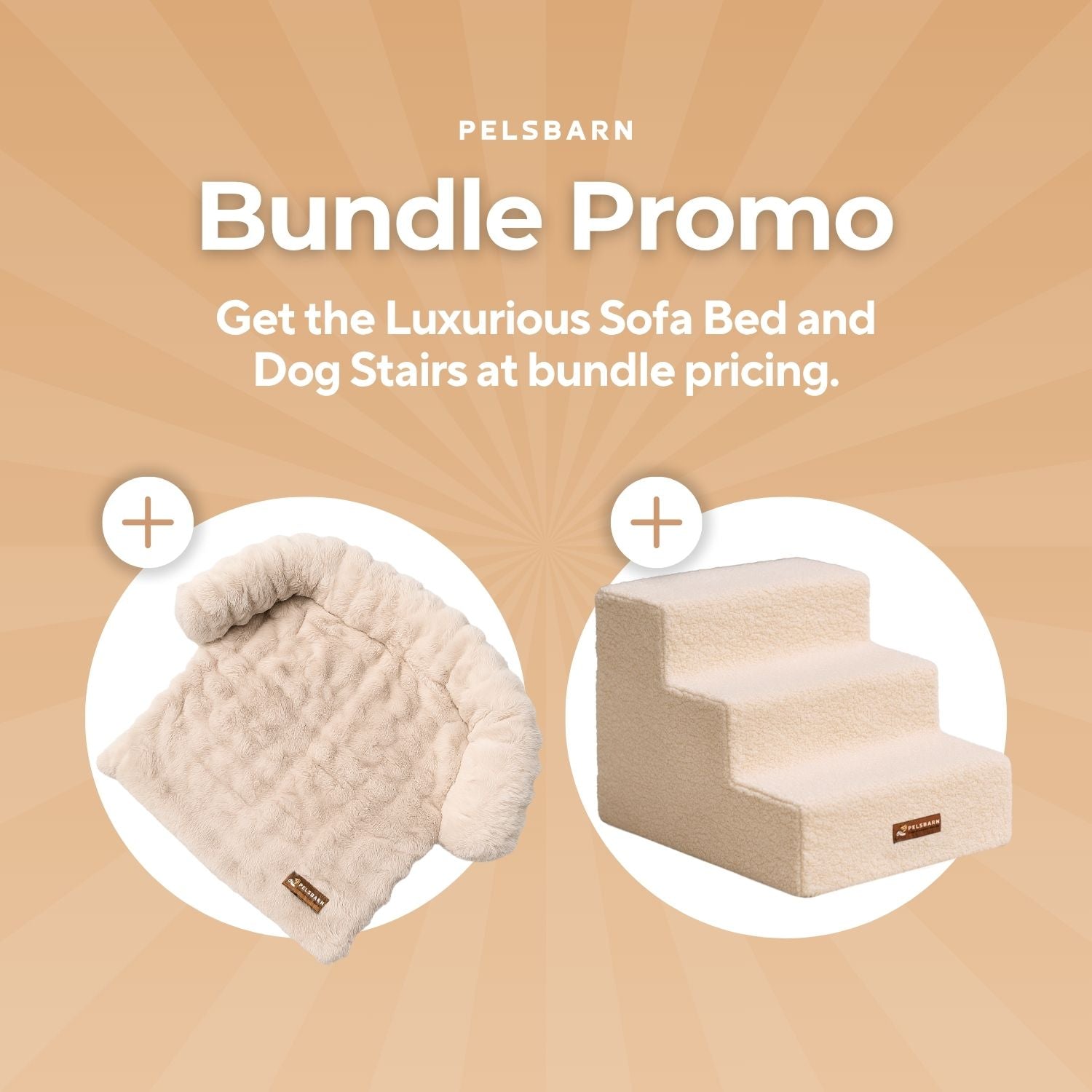 You will receive our Luxurious Sofa Bed along with a matching set of pet stairs, designed to help your dog get on and off the bed safely and comfortably.