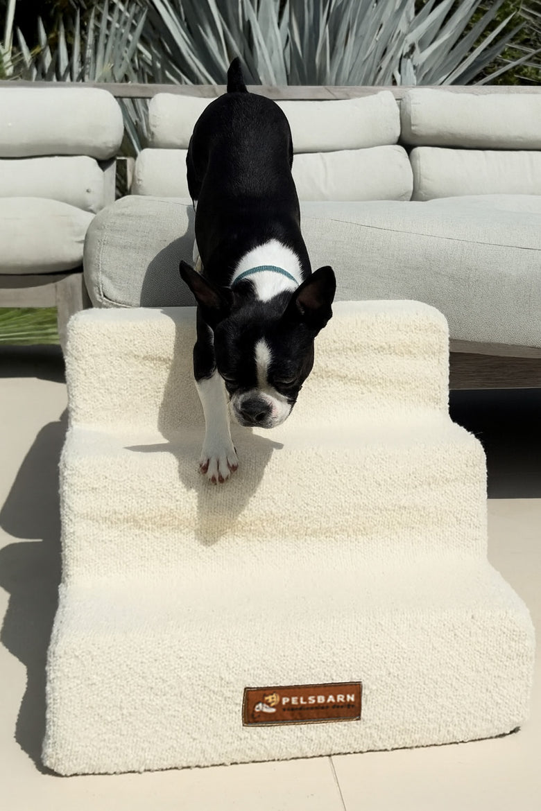 Stairs make it easier for dogs to climb onto their bed, especially small breeds, seniors, or pups with joint issues. They reduce strain and keep your dog safe.