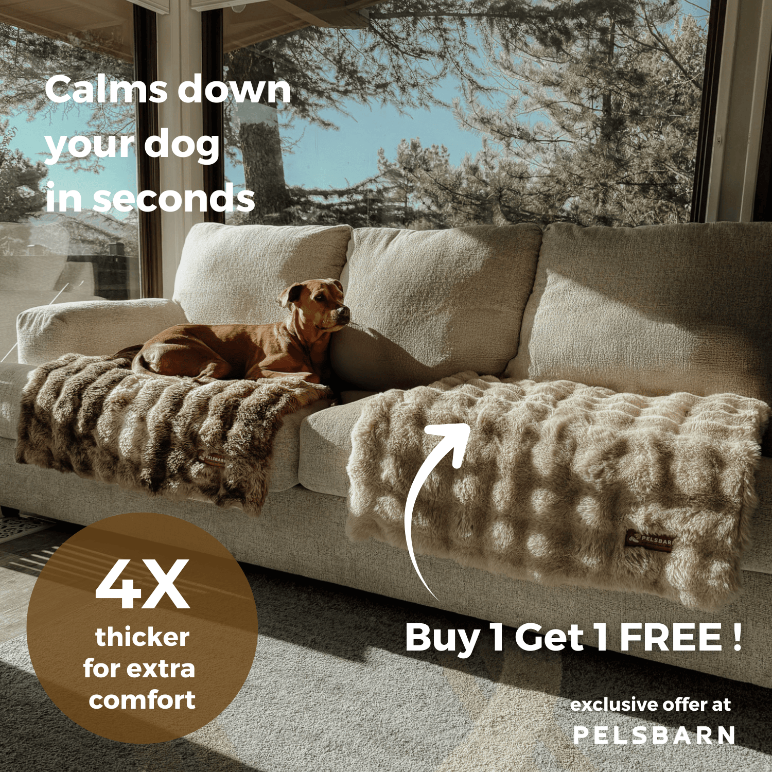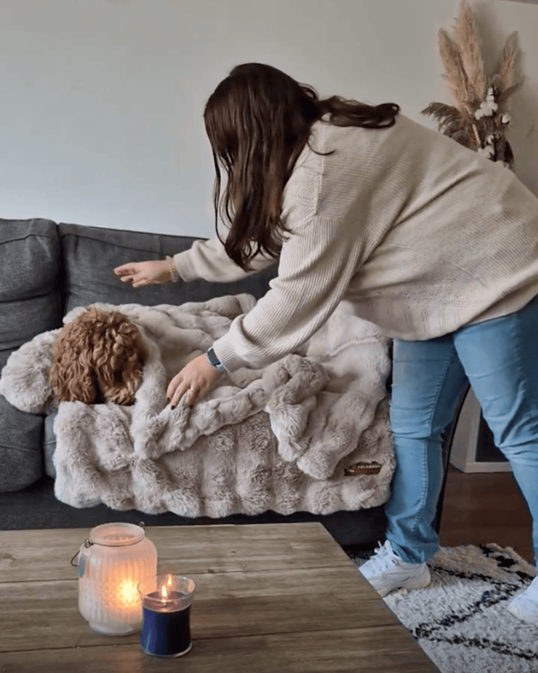 The Luxurious Calming Blanket is irresistibly soft for your dog and acts as a safe space to also protect your furniture.
