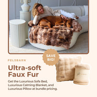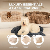You will receive our Luxurious Sofa Bed, a Luxurious Calming Blanket, and a matching Luxurious pillow. It is a complete comfort set designed to blend into your home and keep your pup cozy.