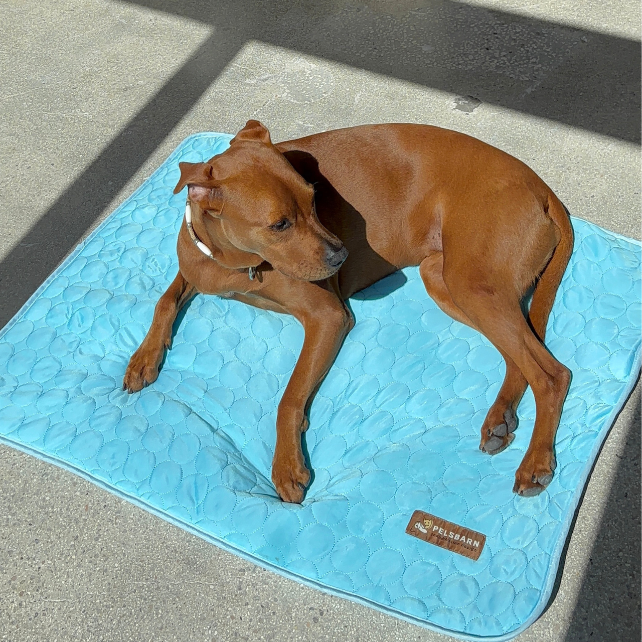 The Pelsbarn Cooling Mat works using breathable, natural Ice Silk fabric combined with pressure-activated cooling technology — no gels, water, or electricity needed.