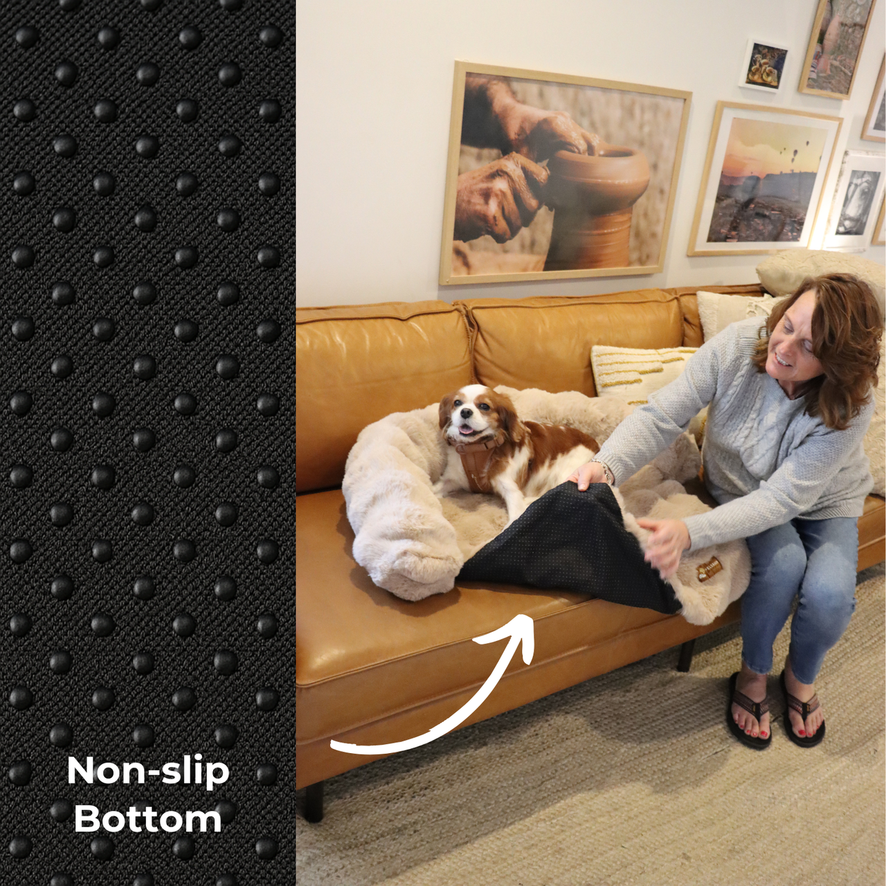 Keeps the bed firmly in place, no sliding around on hardwood or tile floors, even during playful moments.