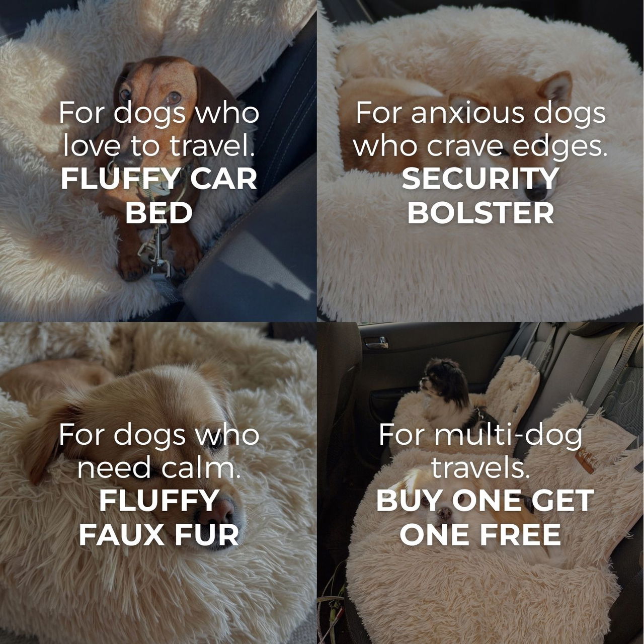 Calming Softness The fluffy texture creates a cozy retreat that helps dogs feel safe and settled, making car trips smoother and more peaceful for both pets and their humans.