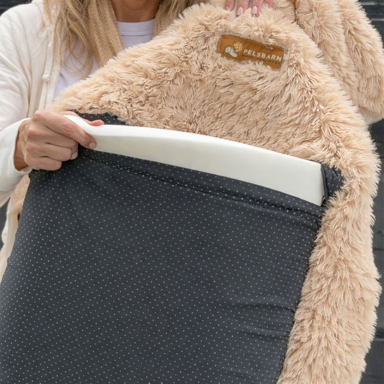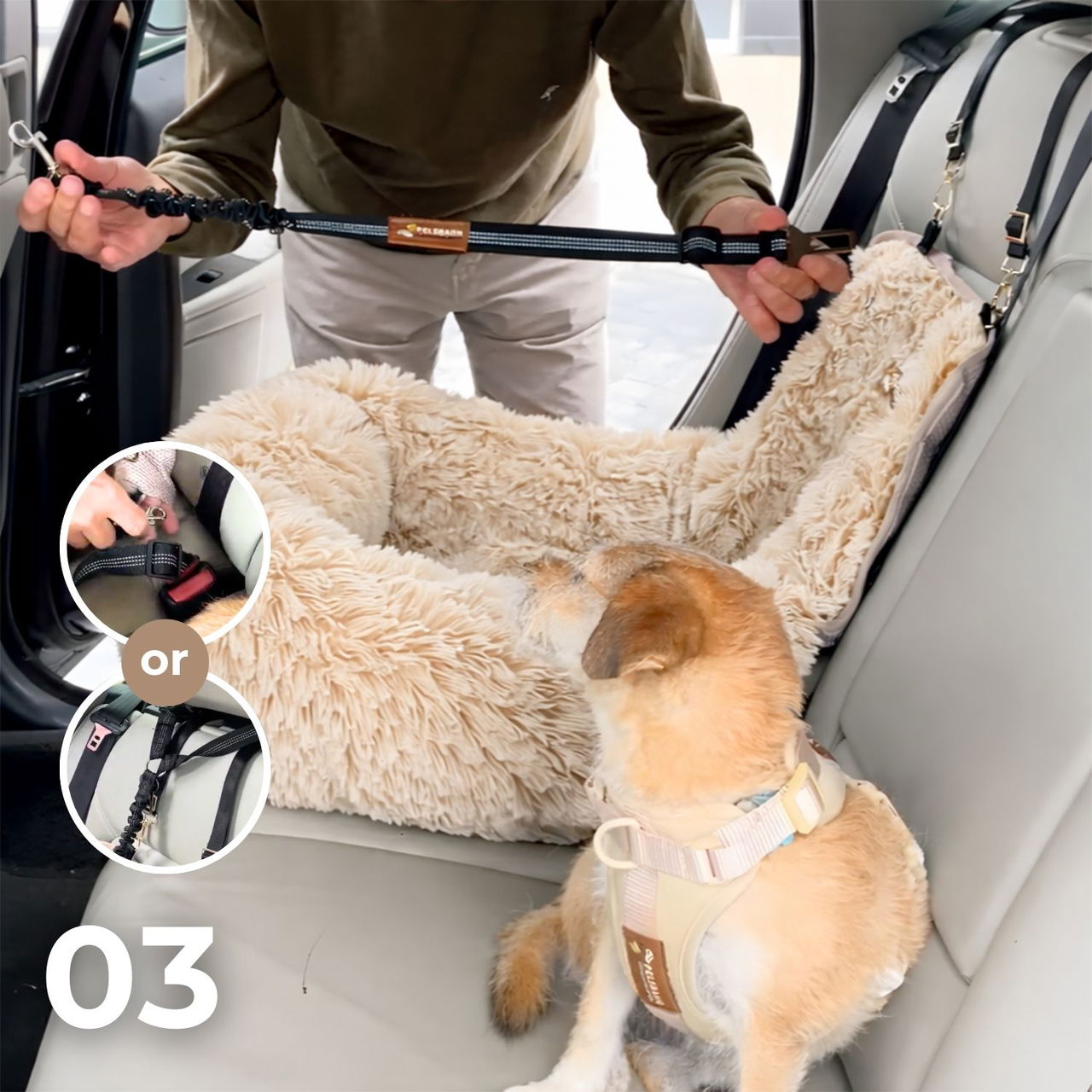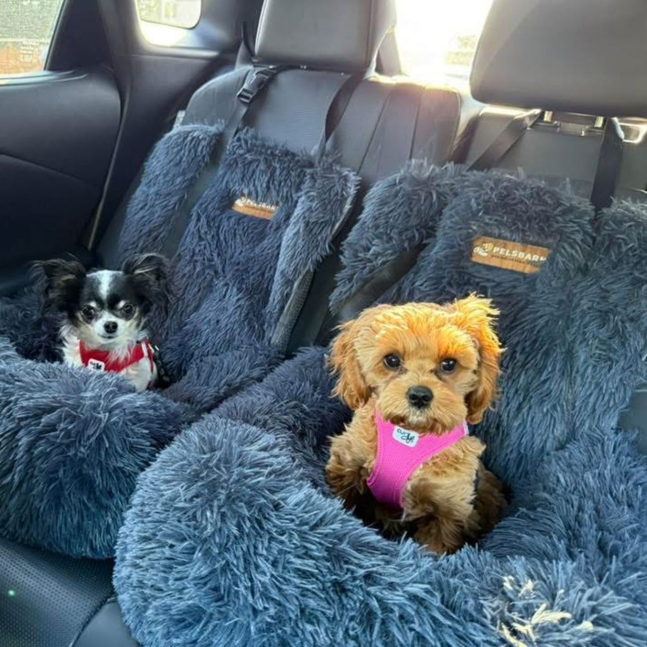 The Pelsbarn Protecting Car Bed 2.0 is crafted with plush, fluffy materials designed to create a cozy space where dogs naturally relax during car rides. The soft, cloud-like surface gently cushions your dog’s body, helping them feel comfortable, supported, and secure while traveling.