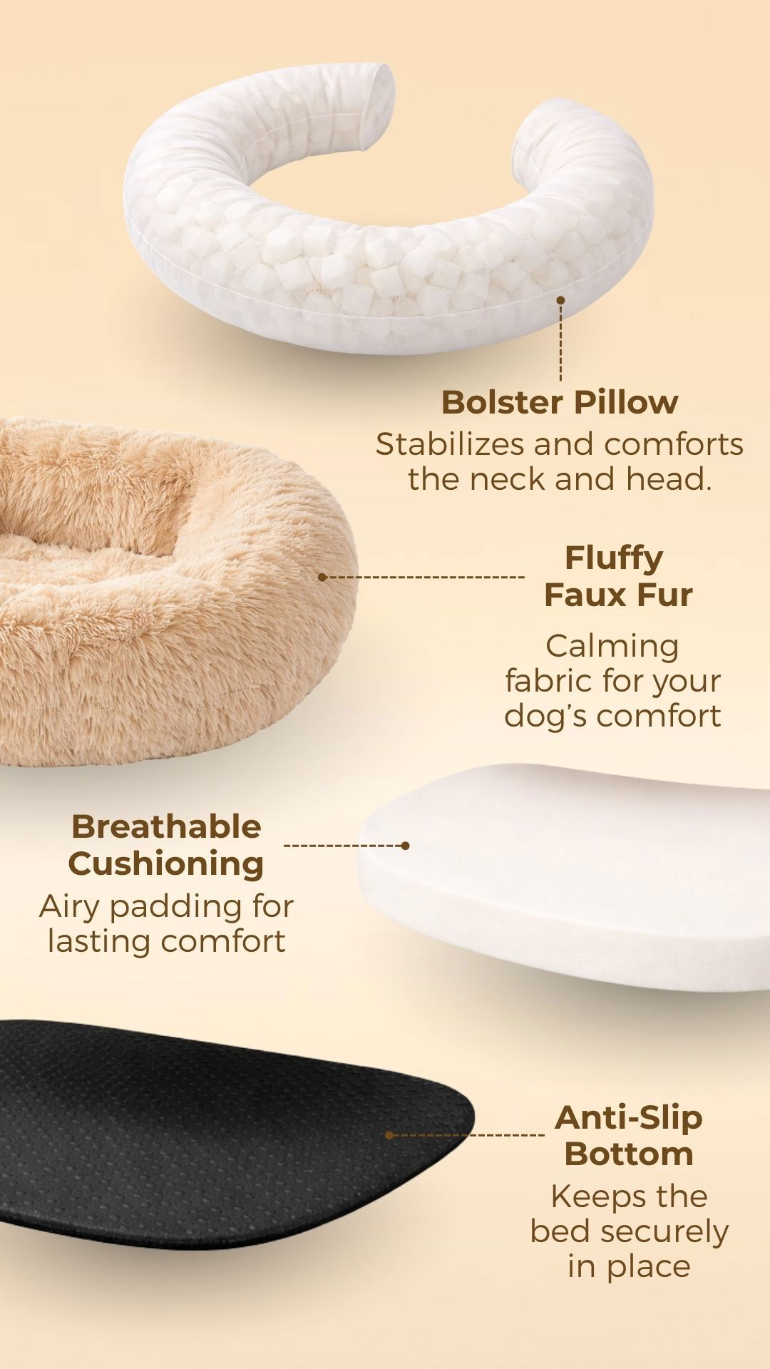 Elevated Comfort Thick, plush cushioning cradles your dog’s body, helping reduce travel fatigue and encouraging relaxed naps during the ride.