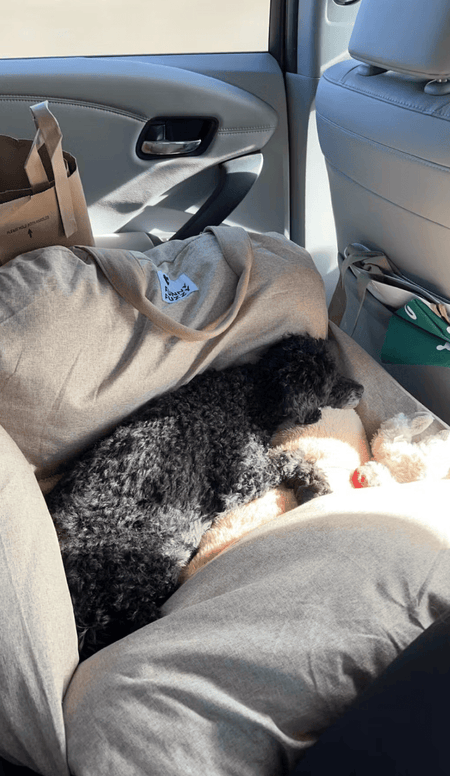 This comfy car bed is made of viscose fibre, nylon, and polypropylene fibre. Your dog will love it!