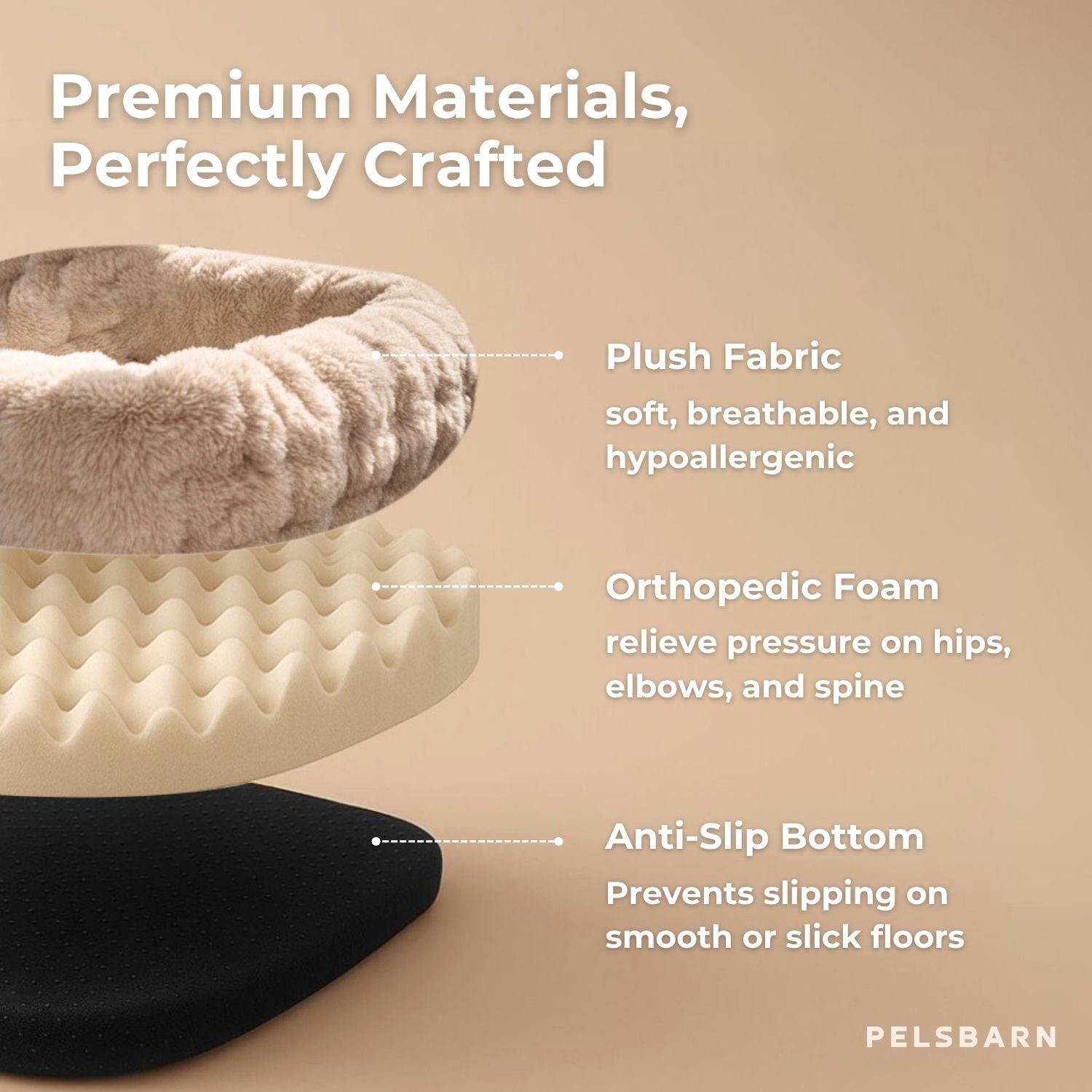 Wrap your furry friend in the ultimate comfort with our luxurious pet bed. Made from incredibly soft faux rabbit fur, it provides a warm and cozy sanctuary. The orthopedic foam base cradles your pet's body, providing superior joint and muscle support, while the raised edges offer a sense of security and a perfect headrest.