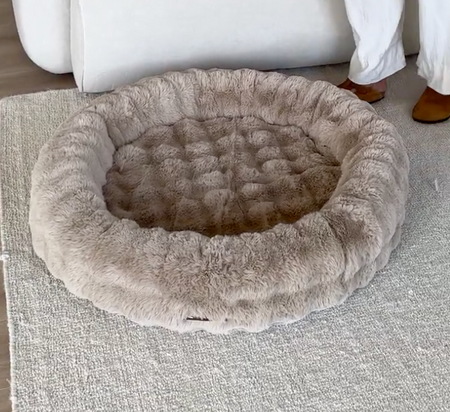 The Pelsbarn Luxurious Donut Bed's anti-slip base ensures stability, keeping your pet securely in place even on slippery leather surfaces and tiles, making safety a priority without compromising on comfort.
