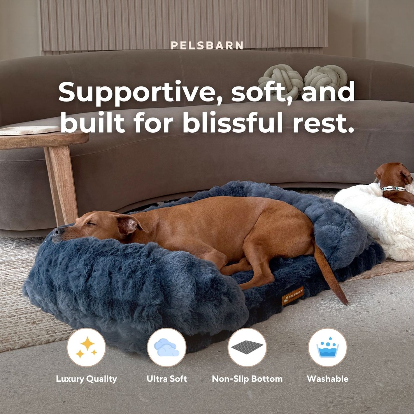 Give your dog the gift of true rest. Crafted from ultra-soft faux rabbit fur and a thick orthopedic foam base, our Luxurious Orthopedic Bed is designed to cradle your pet in comfort. It gently supports joints and muscles, making it ideal for senior dogs or those with arthritis. The plush, raised edges offer both head support and a calming sense of security.