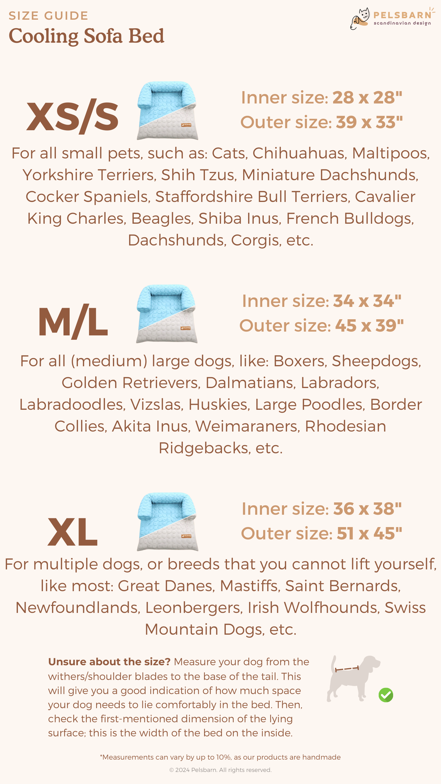Our Pelsbarn Cooling Bed comes in three sizes: