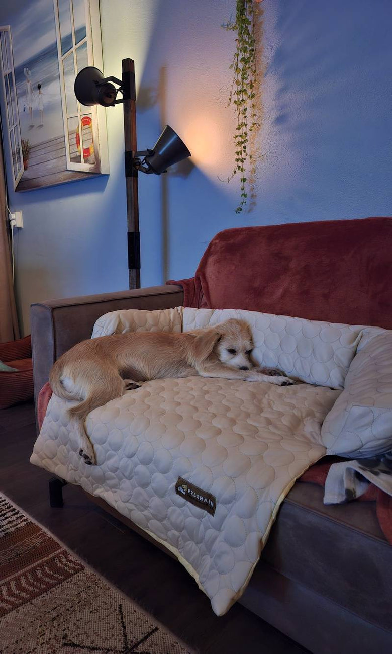 The Pelsbarn Cooling Sofa Bed is made of ice silk fibres that regulate your pet's body temperature unaided. So no freezing or charging required!