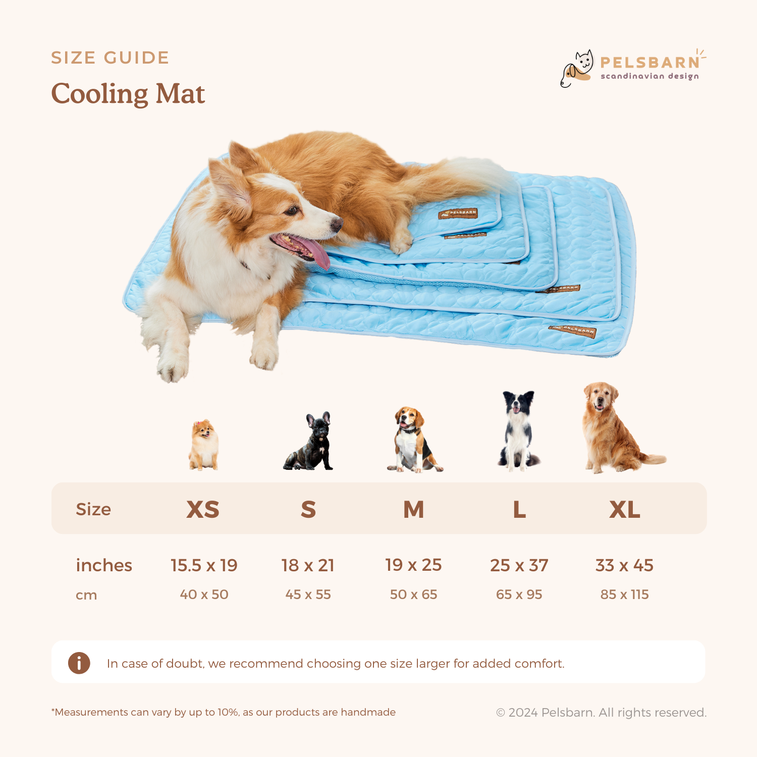 Our Pelsbarn Cooling Mat comes in five sizes.