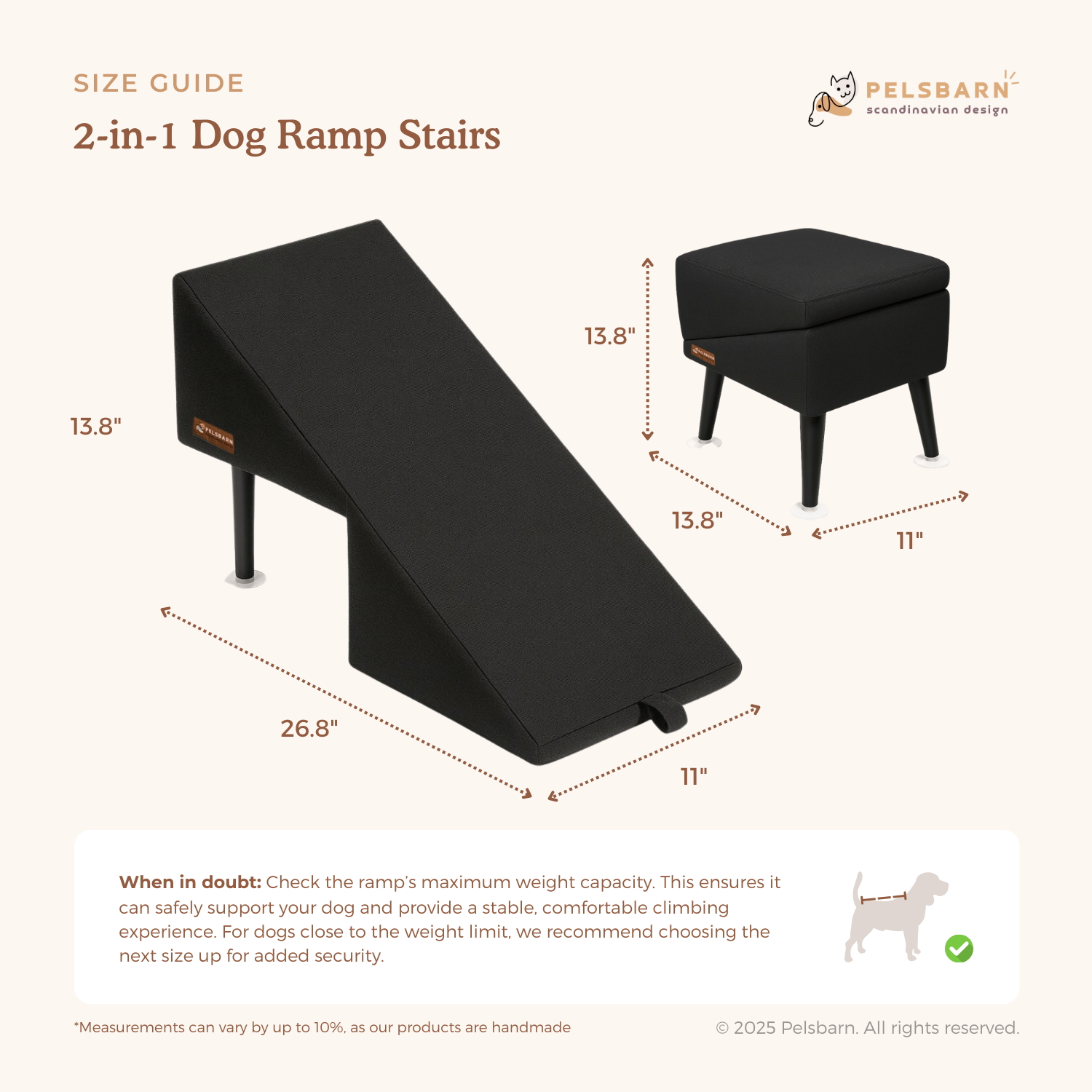 Made to fit seamlessly into your home, this ramp gives your dog the boost they need without adding clutter to your space. When not in use, it doubles as a chic piece of furniture.
