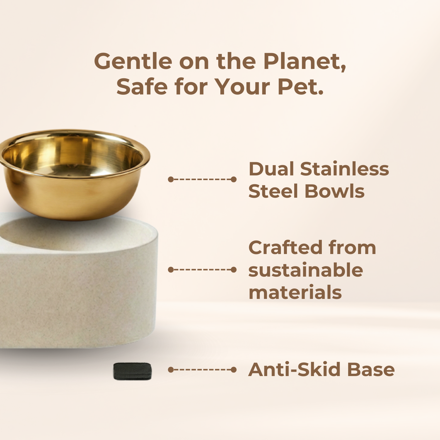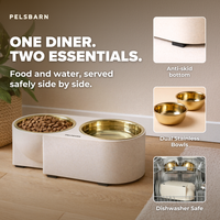 The Pelsbarn Dual Dinner Set brings bowls to vet-recommended height with a thoughtfully designed base crafted from sustainable PP and natural husk materials. Anti-slip rubber feet keep the station firmly planted during even enthusiastic mealtimes, while premium stainless steel bowls resist bacteria and stay effortlessly clean.