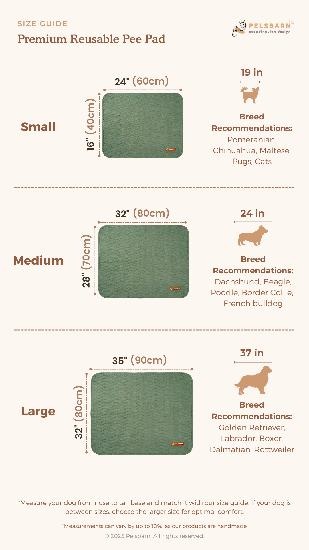 We know how stressful accidents can be whether you're training a puppy or caring for a senior dog. The Pelsbarn Pee Pad is designed to handle the mess quickly and completely, with superior absorption and odor control that keeps your home clean and your mind at ease. Give your dog (and yourself) the protection you both deserve.